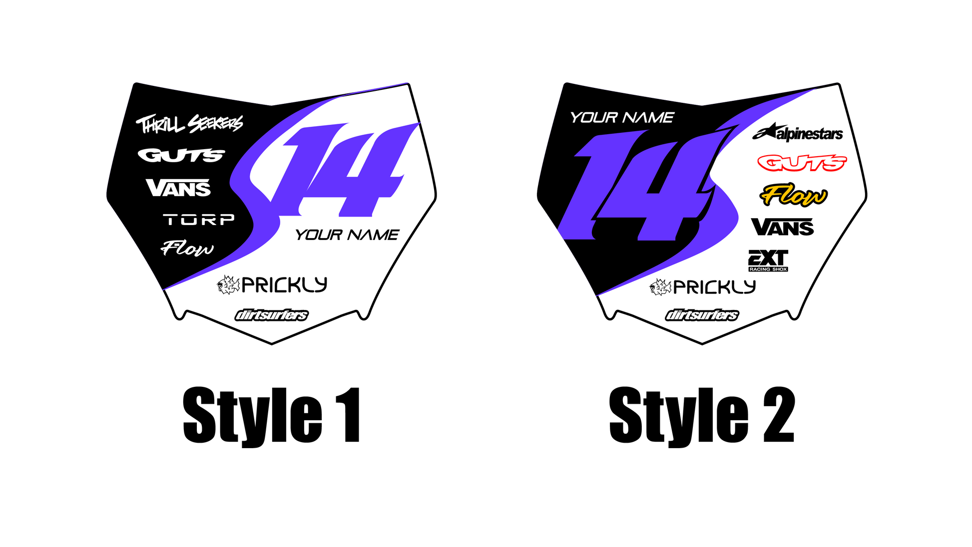 Create your own decals — no need to stick to our pre-designed templates! Upload a reference photo or inspiration image, and tell us exactly how you want your design to look. Whether it's your racing number, team logo, or a personalized graphic, we'll bring your vision to life with pro-level precision.